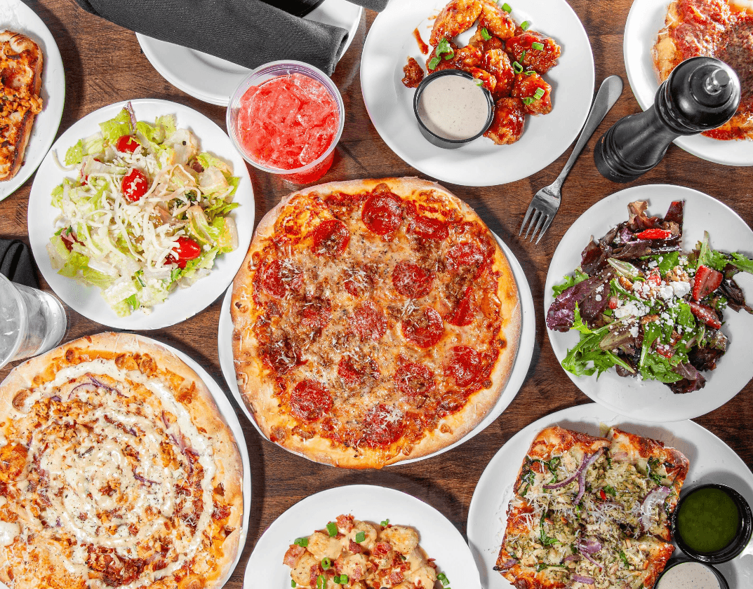 Our menu features favorites like Hot Honey Pepperoni, Four Cheese, BBQ Chicken and Prosciutto and Pineapple pizzas (available in 12" Artisan or Four Corner Pan). We also serve boneless wings, fresh salads with housemade dressings, and craveable sides like Loaded Mac n Cheese and Loaded Tots. Our Gluten Free and Vegan pizza options are best in class!