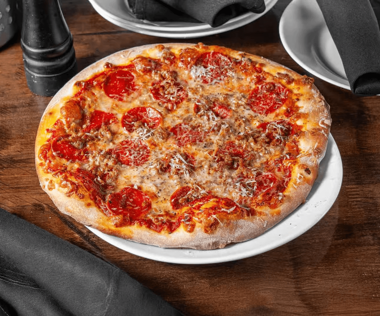 At Paisano's Pizza, we focus on what matters most: the highest quality ingredients, scratch made sauces and dressings, and our classic recipes. Our 12" Handstretched Artisan and Four Corner Pan Pizzas are topped with flavor-packed sauces, premium cheese and fresh toppings. We make our own sauces from the highest quality ingredients we can source, shred our cheeses in house, and ensure freshness of all of our ingredients - we don't even have a freezer!